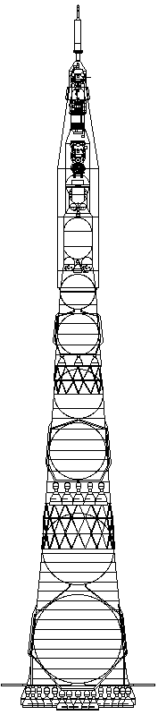 Foguete N1 na plataforma de lançamento (3L-1969);